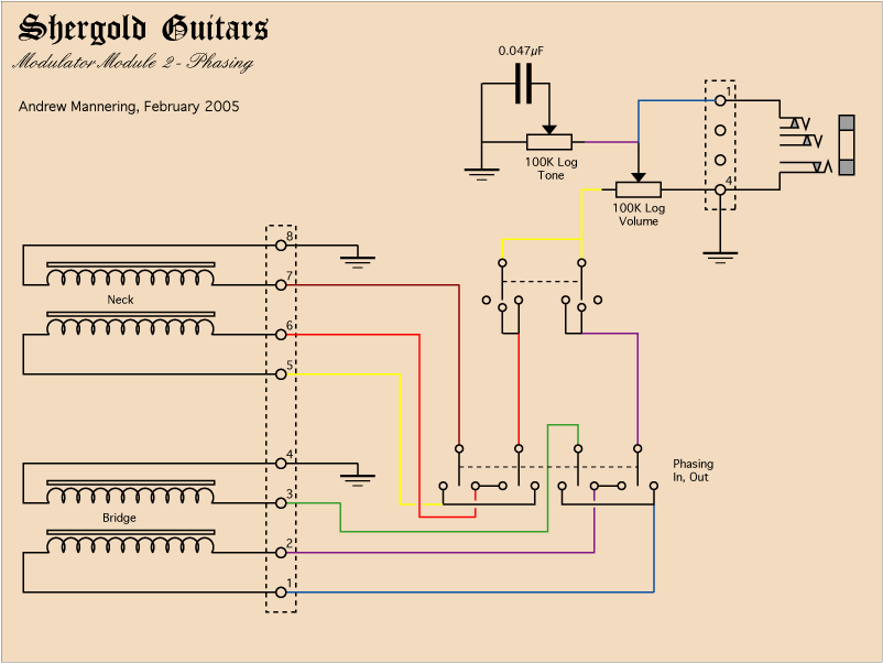 Operating the phasing switch connects the individual coils in each humbucker pickups either in phase or out of phase with each other.
